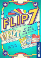 Flip7 von Kosmos ist ein einfaches und kurzweiliges Kartenspiel für alle ab 8 Jahren. Ziel ist es, die meisten Punkte zu sammeln, indem man immer entscheidet, noch eine Karte zu ziehen oder zu passen. Dafür benötigt man eine Portion Glück, denn wenn eine doppelte Karte erscheint, ist man mit null Punkten raus. Achtung: in seiner ganzen Einfachheit macht das Spiel nicht nur Spaß sondern